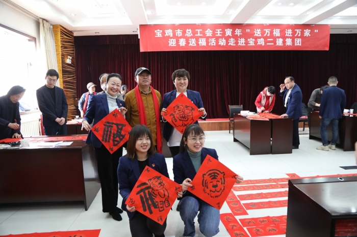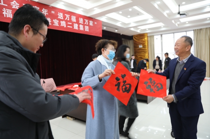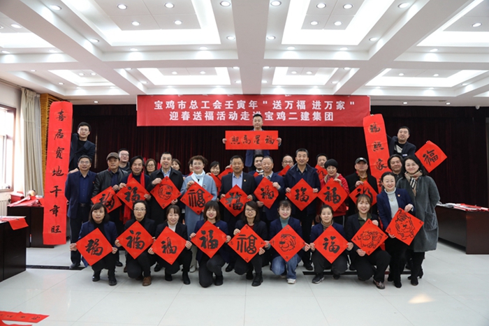 1月18日,寶雞市人大常委會副主任、總工會主席曹海芹,市職工文聯(lián)主席楊曉文、副主席郭旭及6名書法名家走進集團公司,開展“送萬福 進萬家”市總工會壬寅年迎春送福活動,為員工們送來了濃濃的關愛和新春的祝福。