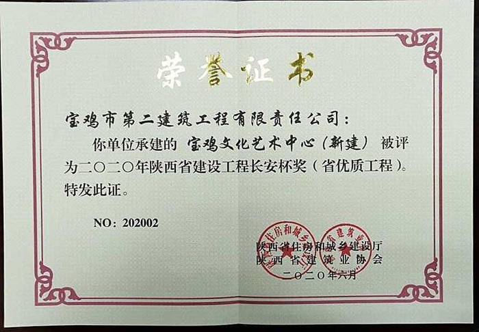 設工程長安杯獎(寶雞文化藝術中心)