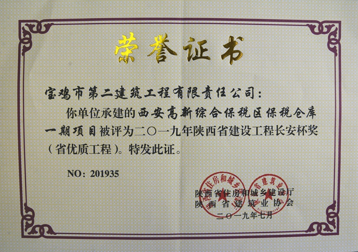 2019年陜西省建設(shè)工程長安杯獎(西安高新綜合保稅區(qū)保稅倉庫一期項(xiàng)目)