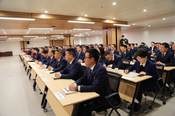 集團(tuán)公司高層領(lǐng)導(dǎo)、中級管理人員、受表彰獎勵的優(yōu)秀單位和個人、總部全體及2023年度新員工,共計300余人參加了會議。副總經(jīng)理、總會計師嚴(yán)海軍主持會議。